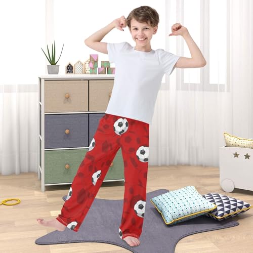 Ball on Red Boys Pants Boys Athletic Pants Long Pant for Boywith Pockets Wide-Leg Size 6-14Y 3