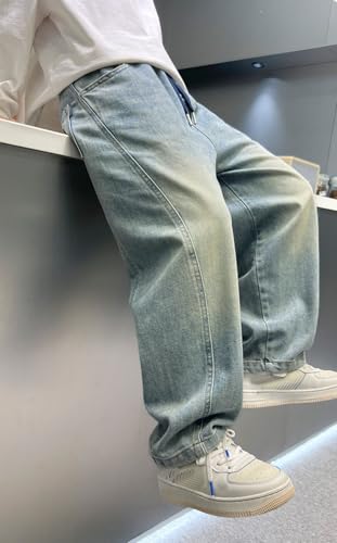 Boys Cargo Pants Casual Loose Fit Denim Trousers Stylish Streetwear Wide Leg Joggers for Kids 6