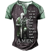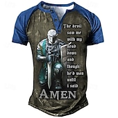More information about Men's Faith Graphic T-Shirt, Knight Warrior 'The Devil Saw Me Until I Said AMEN' Motivational Short Sleeve Tee