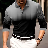 trending ! Men's Geometric Polo Shirts Golf Shirt Long Sleeve Polo Shirts Collared Shirts WorkWear Formal Wear Festival Wear 3D Print Buttons Fall & Winter Blue Orange Gray