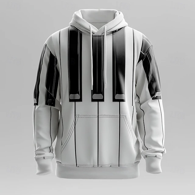 trending ! Men's Optical Illusion Pano Keys Hoodie Sweatshirt Fashion Cool Crew Neck Home Party Streetwear White White 2 Drawstring Fall Winter Designer