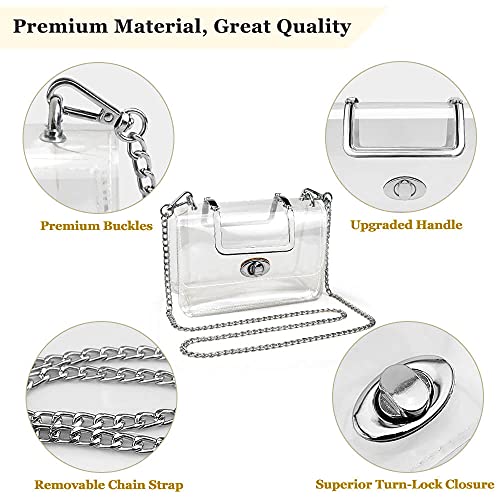 Fabric type: 100% MatteOrigin: ImportedClosure type: Flap🌻 STADIUM APPROVED - COROMAY clear purse is 7.1x4.5x3.1 inch, completely meets stadiums/venues tournament bag policy, helping you gain access all kinds of stadiums easier and faster🌻 1mm THICK PVC, MORE DURABLE - This clear crossbody bag is made of 1mm thick PVC, which is more durable than those bags made of 0.4mm material in the market, it's thick enough to hold its shape🌻 CUTE & trendy - Made of premium materials with silver-tone metal and removable silver chain strap (23 inches long), can be a handbag, tote bag, shoulder bag or crossbody bag🌻 FITS MANY OCCASIONS & AWSOME GIFT - This cute clear purse is big enough to carry your cellphone with portable charger, small wallet, keys, sunglasses, lipstick, mirror, suntan lotion and more; suitable for stadium, concerts, venues, theater, football games, golf tournament, any sporting event, party and so on; make it an awesome gift for your family and friends💯 OUR UNIQUE GUARANTEE - Our clear purse for women come with 100% Satisfaction Guarantee, we also provide world class customer service within 24 hours. Rest assured that we are always ready to help you out, no matter what. 🙂 Perfect for everyday use. premium materials and excellent craftsmanship ensure long-lasting durability.