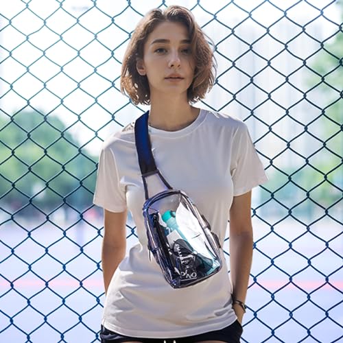 • 【pick up Through Security with Ease】This clear sling bag stadium approved allows you to clearly see the contents and find them easily, and you can quickly get through security checks at airports, events and more without opening the bag!
