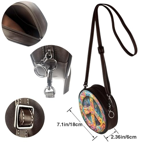 Colored Peace Sign Women Round Crossbody Bags Leather Sling Bag Purse 4