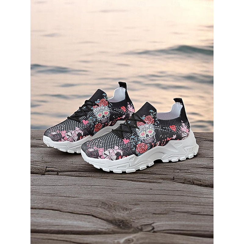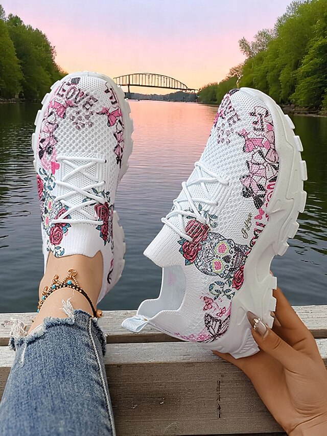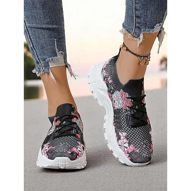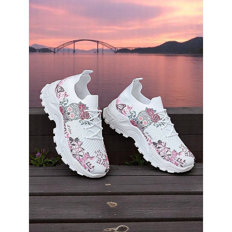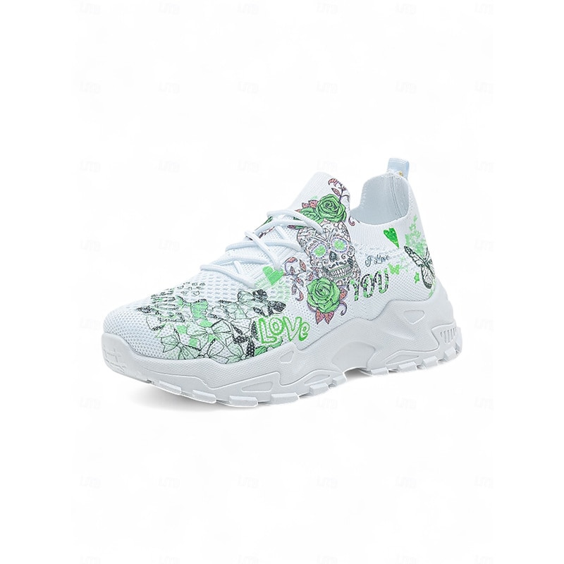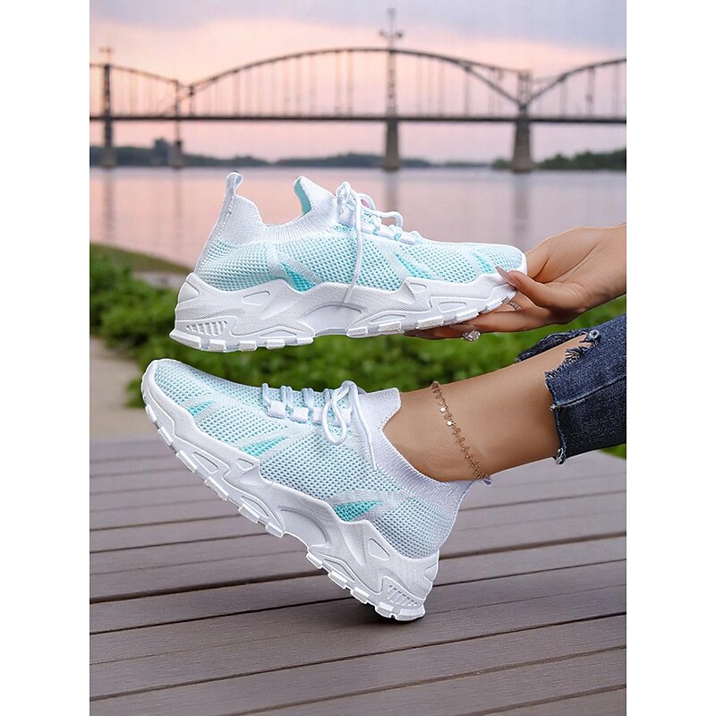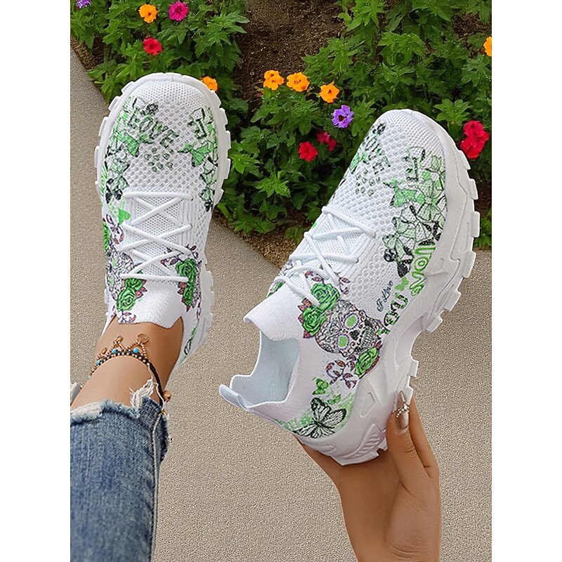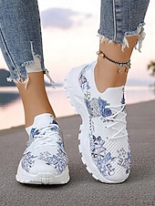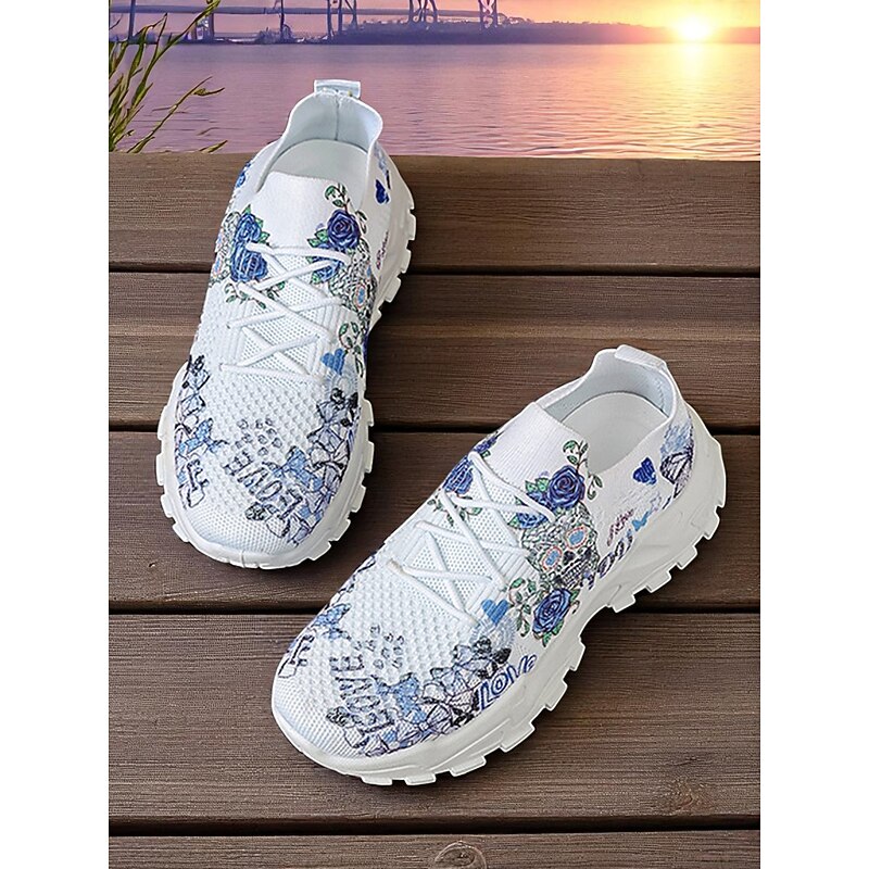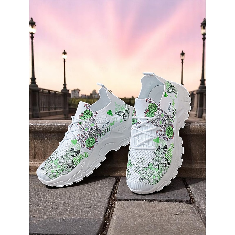 trending ! Women's Flyknit Sneakers with Blue Butterfly Print – Fashionable Lightweight Trainers for Walking, Casual Outings and Travel