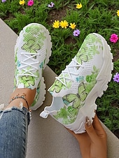 More information about Women's Flyknit Sneakers with Blue Butterfly Print – Fashionable Lightweight Trainers for Walking, Casual Outings and Travel