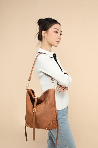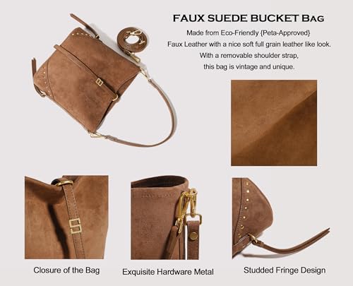 Bucket Bag for Women, Suede Crossbody Bag Tote Bags, Women's Shoulder Handbag, Vintage Suede Studded Fringe Purse