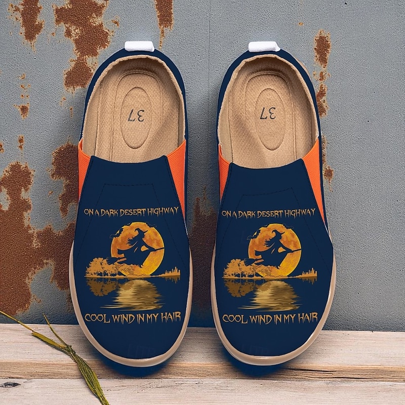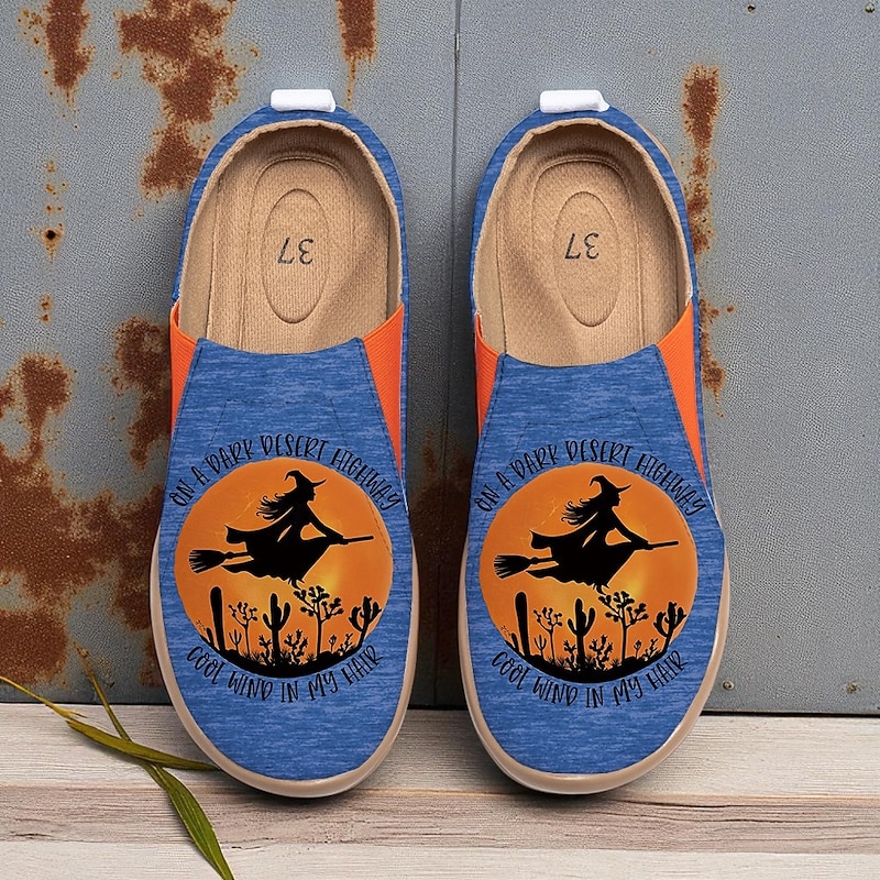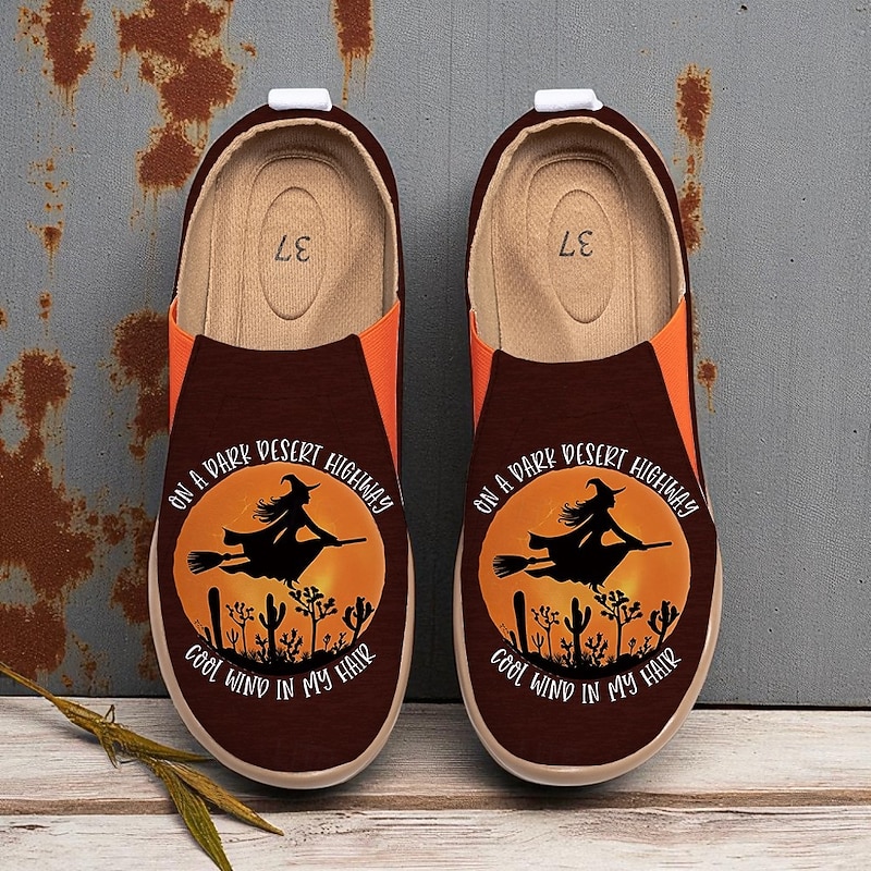$54.99 - Women's Canvas Wide-Width Slip-On Shoes with Witch Flying Desert Sunset Print – Halloween Theme Flats for Parties, Festivals and Everyday Casual Wear 2025. Shop for cheap Shoes For Women online? Buy at lightinthebox.com on sale today!