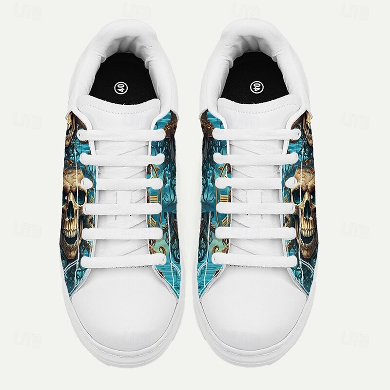 trending ! Men's White Sneakers with Skull and Spider Web Pattern for Gothic Fashion, Rock Concerts and Streetwear Looks