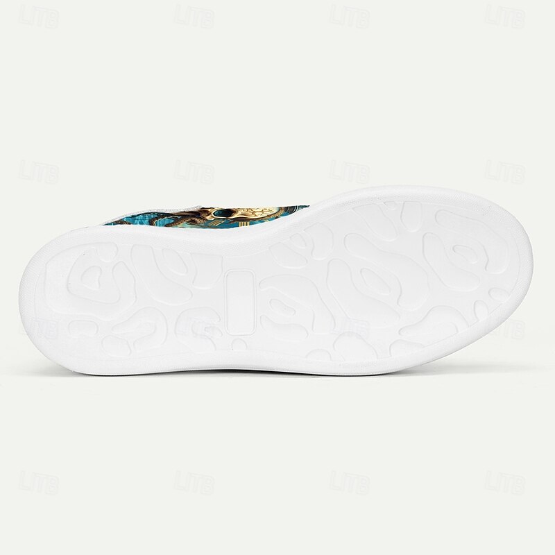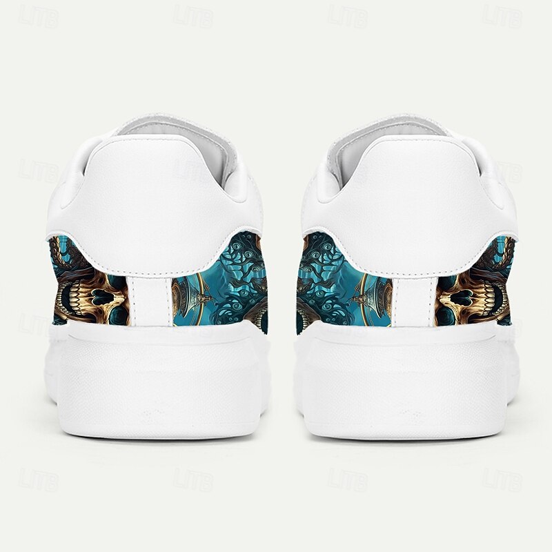 More information about Men's White Sneakers with Skull and Spider Web Pattern for Gothic Fashion, Rock Concerts and Streetwear Looks