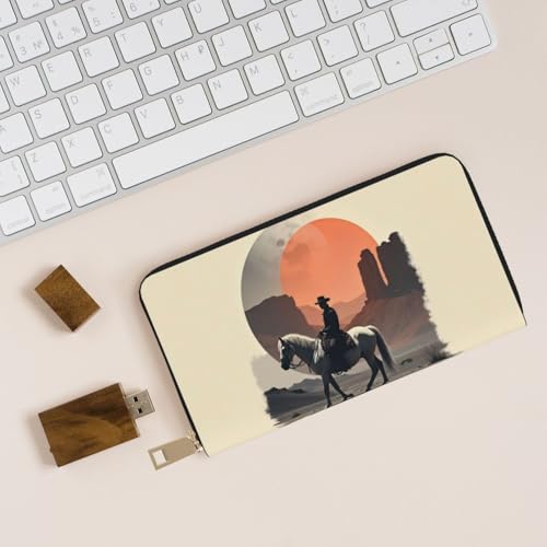 • Quality Material: Crafted from ultra-fine microfiber PU leather, this Vintage Brown Cowboy-B Print wallet women will surely impress with its silky inner lining. Our ladies wallet combines premium faux leather and quality metal zipper for a comfy, lightweight, and sturdy experience. Discover the elegance of leather wallets for women with our superior card holder wallet