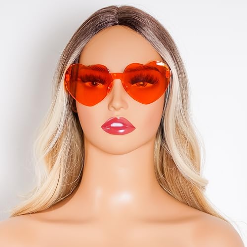 Fengek 6 Pcs Heart Shape Sunglasses Frameless Transparent Glasses Party Favors for Women, Orange 7