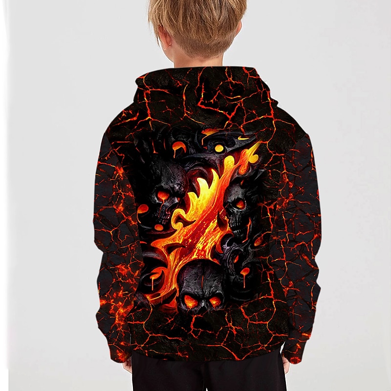 trending ! Halloween Boys 3D Skull Hoodie Long Sleeve 3D Print Fall Active Polyester Kids 4-12 Years Outdoor Regular Fit