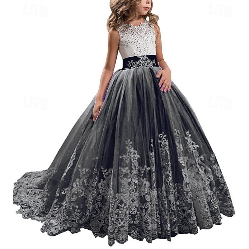 More information about Kids Girls' Flower Girl Dress Party Dress Solid Color Sleeveless Performance Wedding Party Mesh Princess Sweet Mesh Mid-Calf Sheath Dress Tulle Dress Summer Spring Fall 2-12 Years Multicolor Black