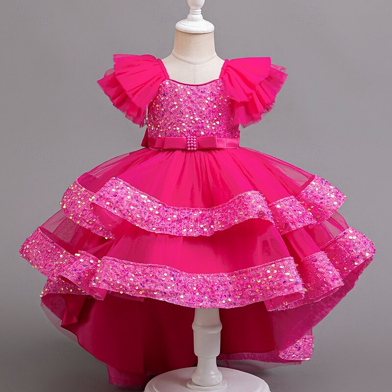 Why Choose Kids Girls' Party Dress Sequin Sleeveless Wedding Special Occasion Sequins Ruched Zipper Adorable Sweet Polyester Asymmetrical Party Dress Tulle Dress Summer Spring Fall 4-12 Years Pink Purple Green?