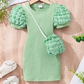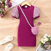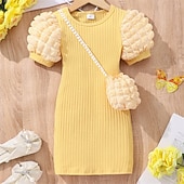 More information about Girls' 3D Solid Color Dress Short Sleeve Summer Vacation Daily Holiday Princess elegant Sweet Little Kids(4-7ys) 4-7 Years Casual Dress A Line Dress Knee-length Regular Fit