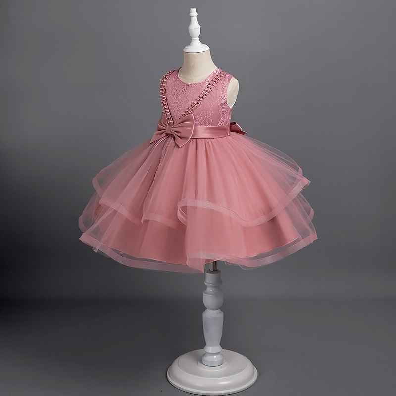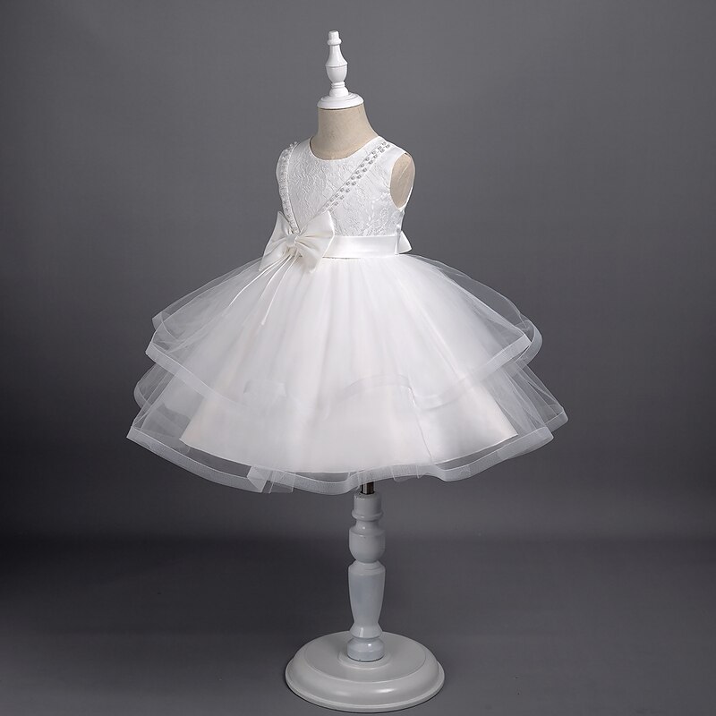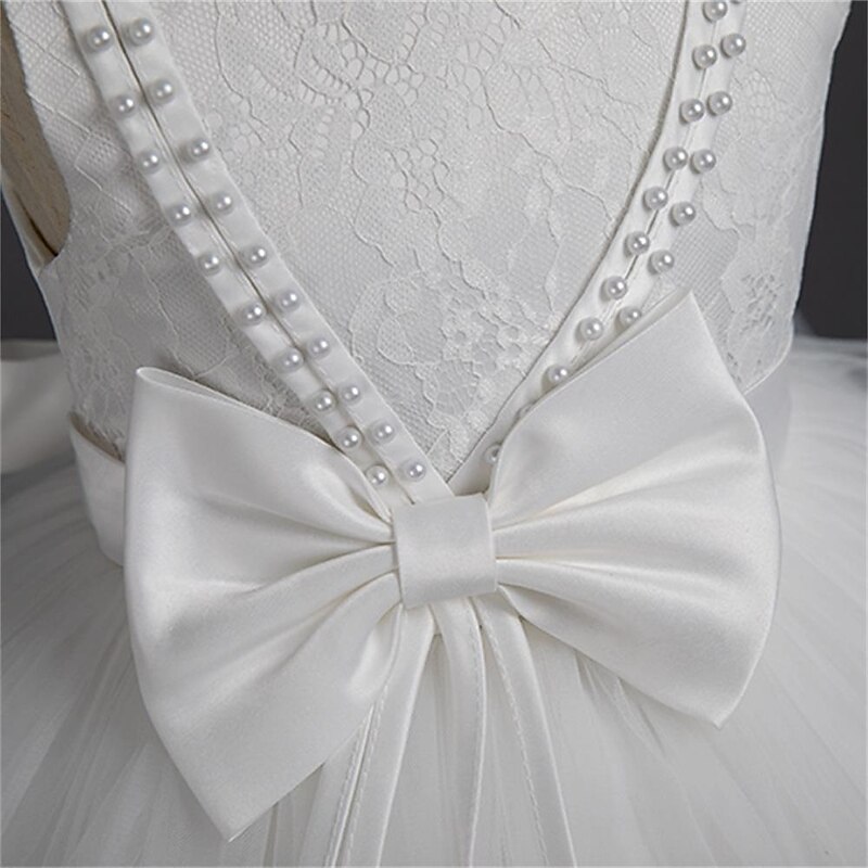 Why Choose Toddler Girls' Party Dress Solid Color Sleeveless Performance Wedding Tie Knot Adorable Princess Polyester Knee-length Tulle Dress Summer Spring 3-7 Years Multicolor White Champagne?