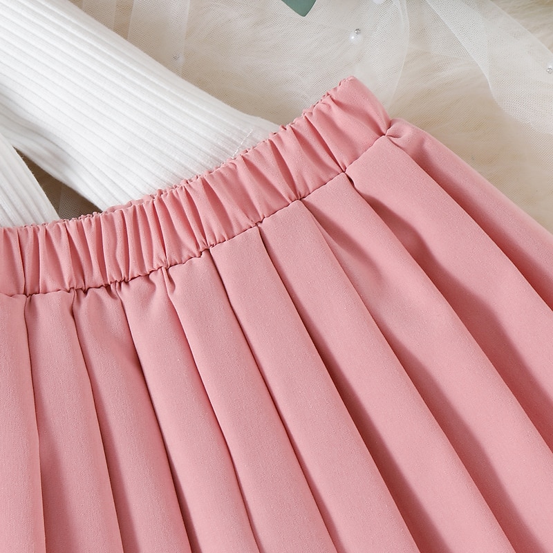trending ! 2 Pieces Toddler Girls' Solid Color Skirt & Sweater Set Long Sleeve Active Outdoor Cotton 3-7 Years Fall White