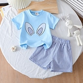 trending ! 2 Pieces Kids Girls' Rabbit Print T-shirt & Shorts Set Short Sleeve Cute Outdoor 4 years+ Summer Blue