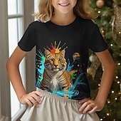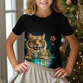 trending ! Girls' 3D Graphic Animal Tiger Tee Short Sleeve Summer Spring Fashion Basic Kids 4-12 Years Crew Neck Outdoor Casual Daily Regular Fit