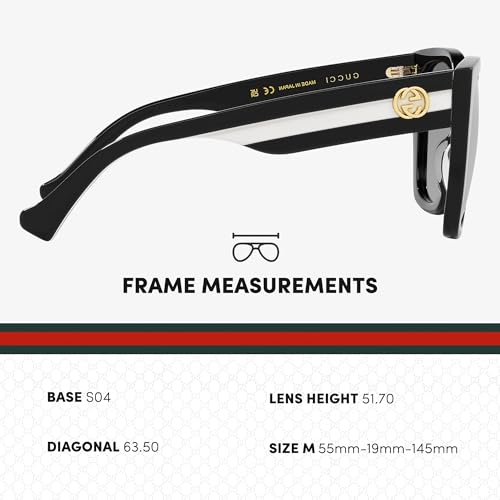 Origin: JapanUnmatched Elegance for Every Visionary: Gucci GG 1300S offers a masterful blend of style and protection, ideal for both men and women, with a taste for luxury sunglasses and fashion-forward design.Crafted for Distinction: Embrace the timeless pilot shape that defines contemporary luxury, flawless for trendsetters seeking bold designer sunglasses from renowned designers like Gucci.Luxury Across All Spectrums: These shades are not just sunglasses; they're a fashion statement infused with the essence of Gucci, offering enhanced vision clarity and premium UV protection.Versatile Fashion Accessory: Whether you're seeking statement glasses for men or women, the GG 1300S caters to all with impeccable style and functional elegance.Precision Fit and Comfort: The Gucci GG 1300S sunglasses feature a lens width of 55mm, a bridge of 19mm, a temple length of 145mm, a lens height of 51.7mm, and a diagonal measurement of 63.50mm, ensuring a perfect fit and maximum comfort for any wearer.Inclusive Style: These Gucci sunglasses embrace all genders and styles, ensuring everyone can enjoy the splendor of Gucci eyewear with a sleek, refined look. Perfect for everyday use. premium materials and excellent craftsmanship ensure long-lasting durability.