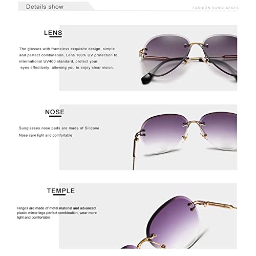 CGZWFERA-Women Rimless Sunglasses Blue Gradient Lens UV400 Protection 7