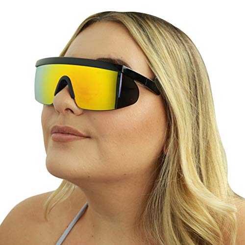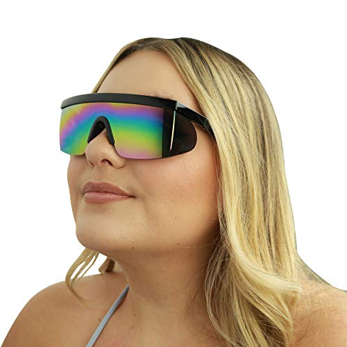 trending ! ShadyVEU Semi Rimless 80's Throwback Retro Neon Mirrored Rainbow Colorful Rave Zig Zag Shield Cover Sunglasses
