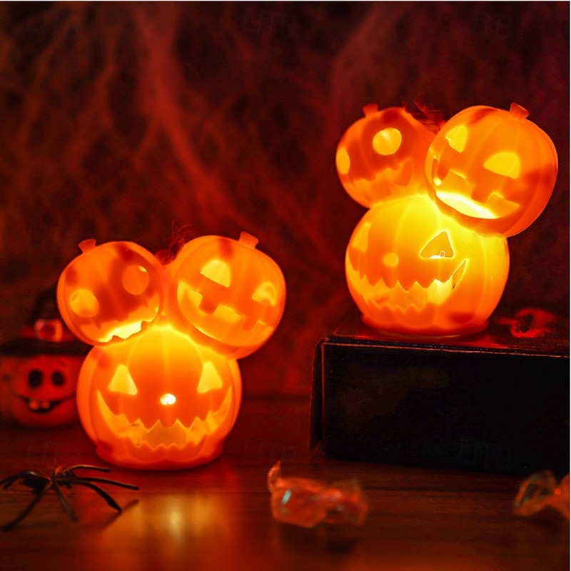1 Pc Halloween Pumpkin Lantern Luminous Decorative Prop 3 Head Mutant Pumpkin Lantern Atmosphere Ornament Lamp 2