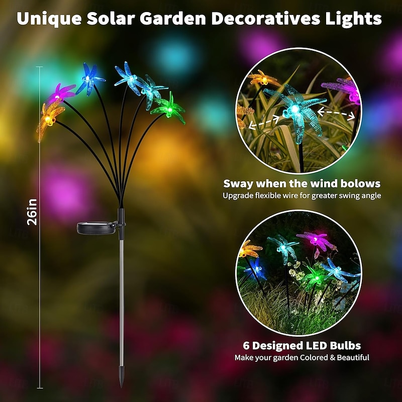 More information about Solar Hummingbird Lawn Lights 6LED Swaying Firefly Lights Outdoor Waterproof Garden Lights Dragonfly Butterfly Yard light Christmas Wedding Holiday Party Park Patio Pathway Landscape Decoration 1/2PCS