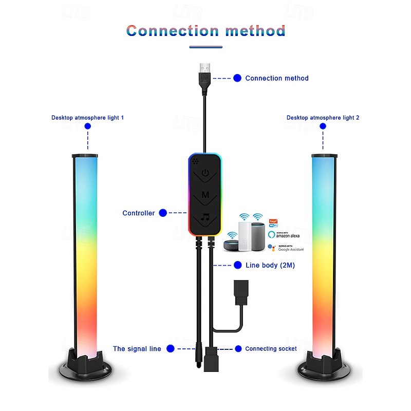 More information about LED Smart Light Desktop Atmosphere Light, TV Background Light Tuya Wifi Bluetooth Smart Colourful Competitive Game Light with APP Remote Control USB Powered Interior Decorative Light