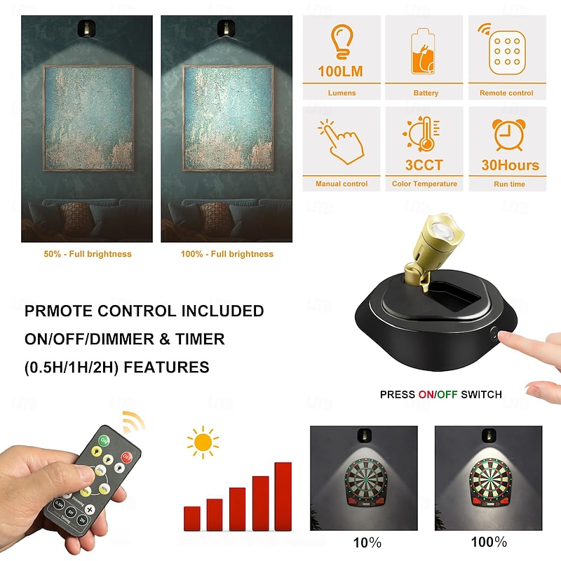 Why Choose 2 Pcs RGB Colorful Dimmable Spotlight Wall Light Mural Light Remote Control USB Rechargeable Battery Adjustable Dimmable Color Atmosphere Light?
