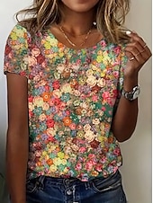 This Women's T Shirt Summer Tops Floral Graphic traditional Casual Short Sleeve Crew Neck Crop Tops Daily Weekend Print Rainbow Summer Spring Fall combines elegant design with practical functionality. Every detail has been carefully considered to ensure you get the best possible experience. The excellent construction means this product will serve you well for years to come.