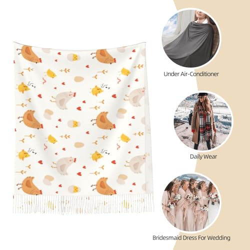 Fabric type: Funny ChickenCare instructions: Machine WashOrigin: ImportedSize: Our Scarf Measures77.6x28.3 Inch /197x72cm With TasselsMaterial: Imitation Cashmere, Soft And Lightweight, Bright-Colored And Fine Texture,Cozy Thin Fabric, Warm In Winter, Ventilated During SummerOccasions: This fashionable Winter Scarfs Will Dress Up Any Outfit Whether A Formal Or Casual Occasion, Such As A Wedding Or Dinner Date Or Simply Use As A Fall Or Winter Evening WrapVarious Pattern Are Available:Those Fashion Scarfs Can Mix And Match For Any Type Of Coat,Jacket,Blouse,Sweater,Shirt And Dress. Can Be Worn Long, Infinity, Hijab, Knotted ,Twisted,Wrapped Or Doubled Around Neck, Shoulders And HeadPerfect Gift Ideal: This Scarf Is The Perfect Gift For Birthdays, Brides, Bridesmaids, Weddings, Christmas, And New Year Celebrations. Whether You'Re Shopping For Friends, Colleagues, Or Family Members, This Stylish Accessory Is Sure To Delight And Impress. Make Your Loved Ones Feel Special With This Thoughtful And Fashionable Gift Perfect for everyday use. first-class materials and excellent craftsmanship ensure long-lasting durability.