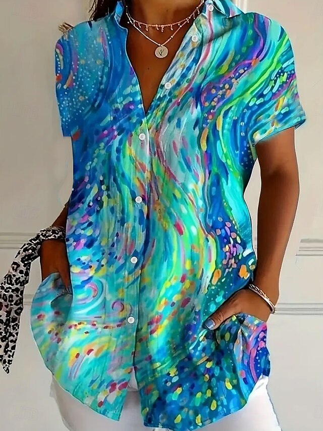 Why Choose Women's Shirt Long Sleeve Button Down Blouse Floral Graphic Color Gradient Daily Casual Short Sleeve Shirt Collar Regular Tops Daily Yellow Blue Green Summer?