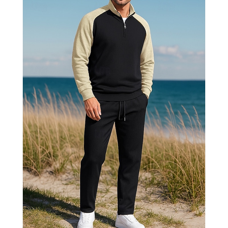 $36.99 - Men's Pullover Sweatsuit Sets 2 Piece Tracksuit Lounge Outfits Quarter Zip with Pocket Color Block Clothing Suit Fall White Khaki Hiking Vocation Outdoor Long Sleeve Sport Activewear Micro-elastic 2025. Shop for cheap Tracksuits online? Buy at lightinthebox.com on sale today!