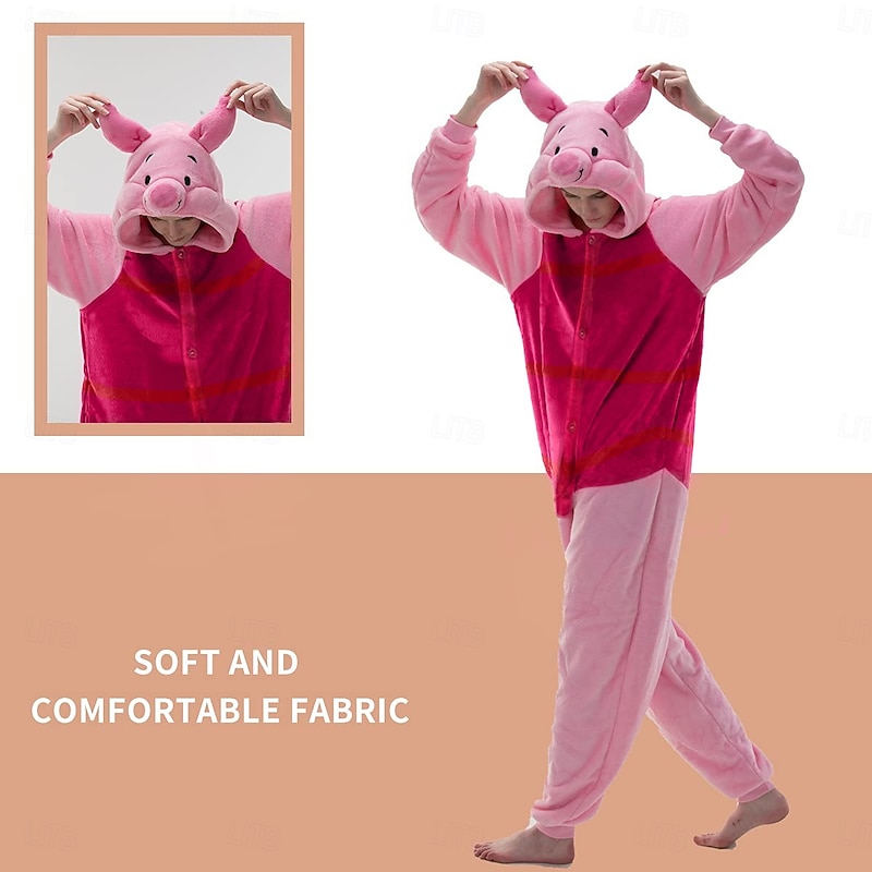 Crafted from velvety flannel, this pig-themed onesie offers excellent warmth and comfort, making it perfect for cozy nights and themed events. The micro-elastic material ensures a snug yet flexible fit, accommodating both movement and relaxation.