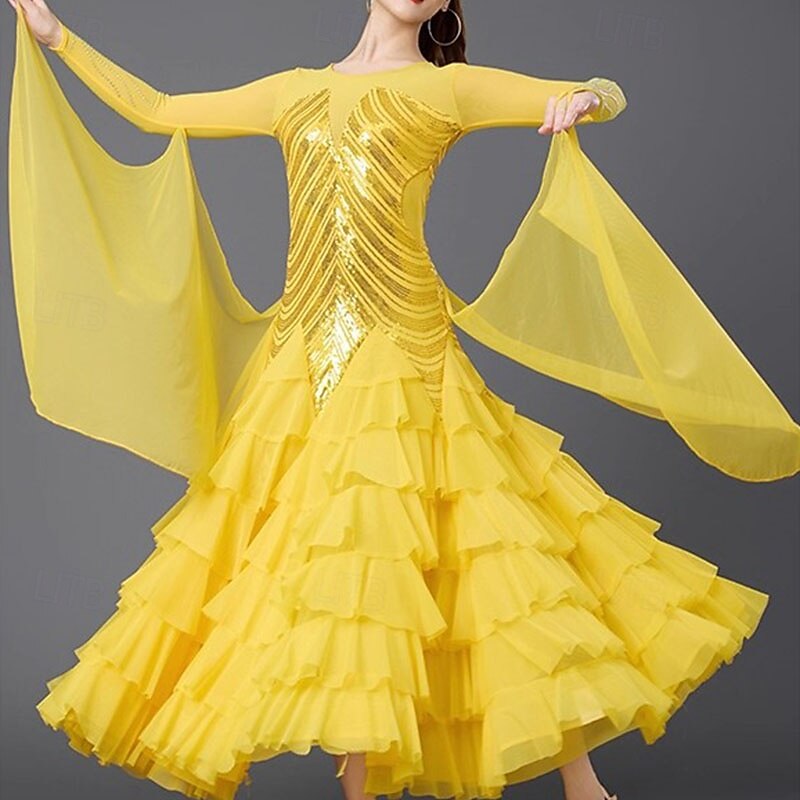 This Ballroom Dance Dress Sequins Women's Performance Party Long Sleeve Linen Cotton Blend combines elegant design with practical functionality. Every detail has been carefully considered to ensure you get the finest possible experience. The superior construction means this product will serve you well for years to come.