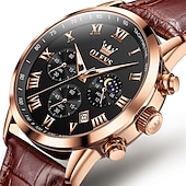 More information about OLEVS Men Quartz Watch Sports Waterproof Moon phase Luminous Calendar Chronograph Genuine Leather Watch