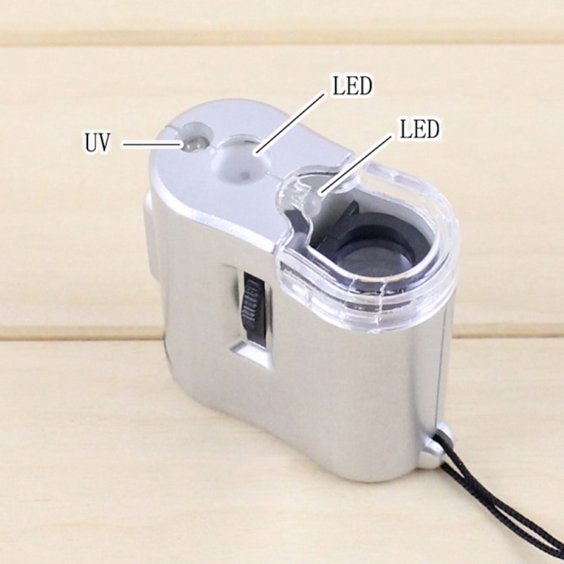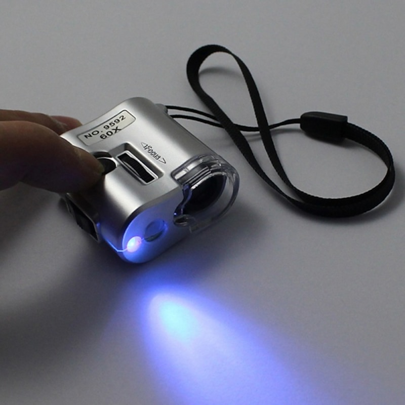 Mini Pocket 60X Microscope Magnifier Glass Jeweler Loupe with LED UV Light 6
