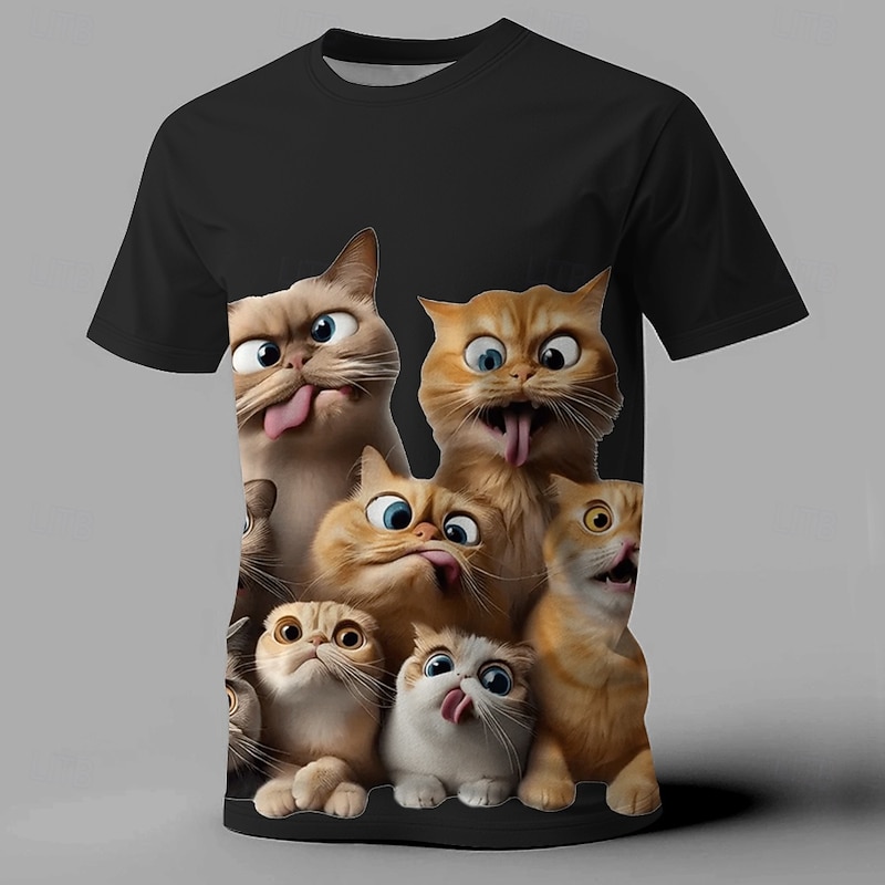 Men's Cat Funny T Shirt Short Sleeve T shirt 3D Print Crew Neck Shirt Exaggerated Designer Party Holiday Black White Yellow Summer Spring Clothing Apparel S M L XL XXL XXXL 5