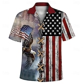 trending ! Men's American US Flag Independence Day Patriotic Shirt Casual Shirt Cuban Collar Shirt Short Sleeve Army Militray Holiday Streetwear Summer Spring Camp Collar Shirt 3D Print Red