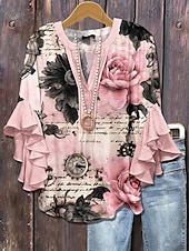 This Women's T Shirt Floral Fashion current 3/4 Length Sleeve V Neck Regular Tops Daily Ruffle Print Pink Summer combines elegant design with practical functionality. Every detail has been carefully considered to ensure you get the best possible experience. The premium construction means this product will serve you well for years to come.