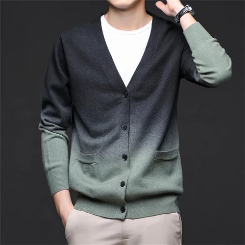 trending ! Men's Gradient Color Knit Cardigan Slim Fit V-Neck Long Sleeve Casual Knitted Sweatercoat