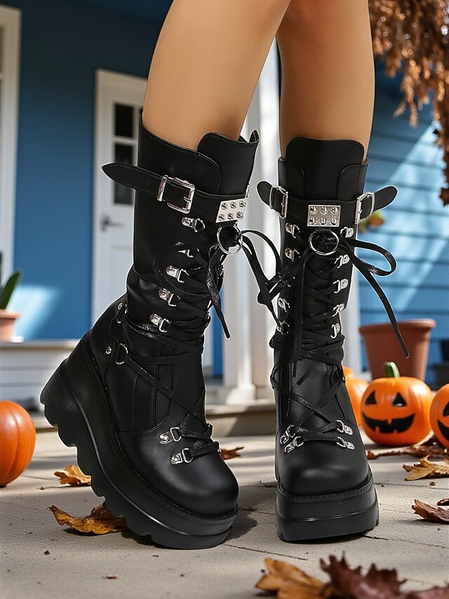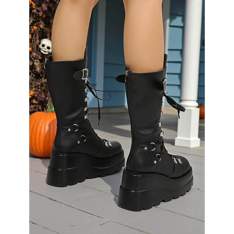 $54.99 - Women's Gothic Punk Platform Knee-High Boots - Black Lace-Up Combat Boots with Buckle and Studded Details for Halloween, Cosplay, and Night Out 2025. Shop for cheap Shoes For Women online? Buy at lightinthebox.com on sale today!