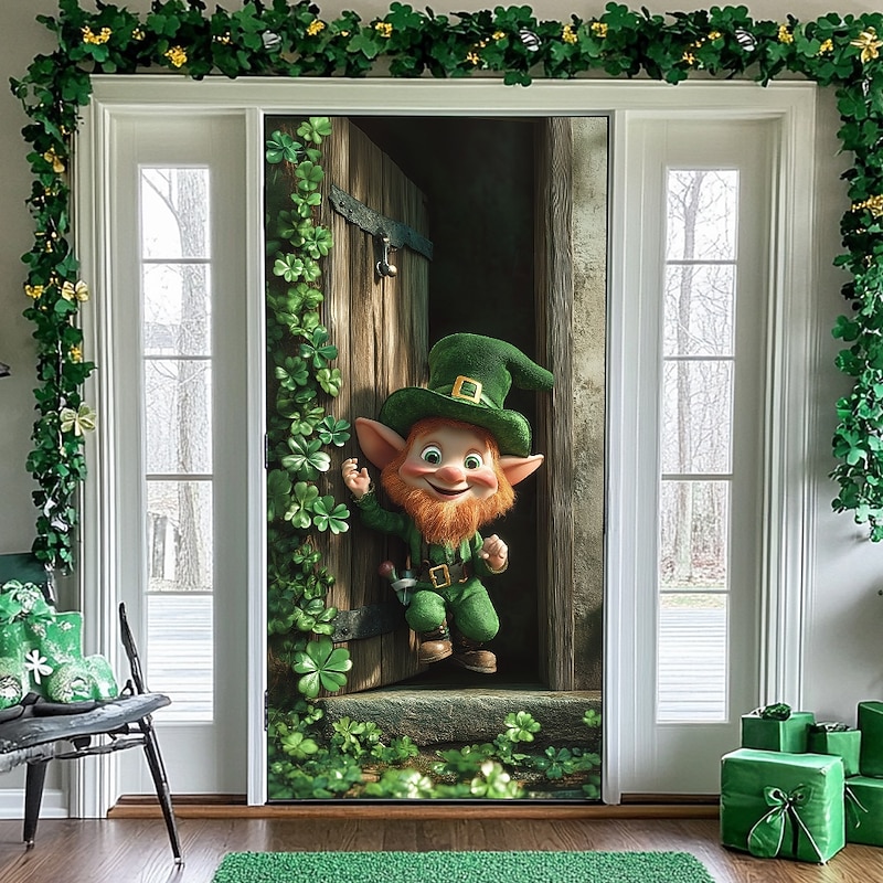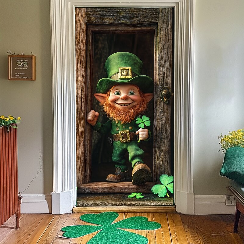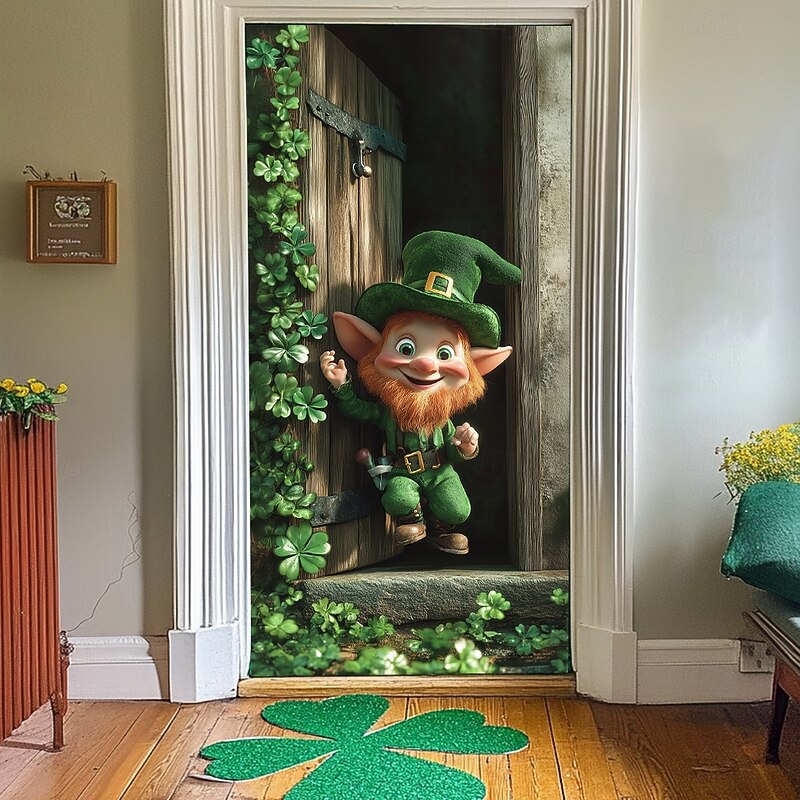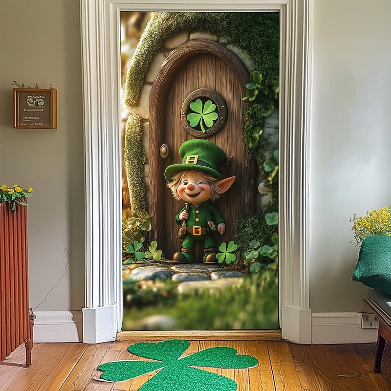 trending ! Saint Patrick's Day Door Decorations Door Covers Gnome Door Tapestry Door Curtain Decoration Backdrop Indoor/Outdoor Door Banner for Front Door Farmhouse