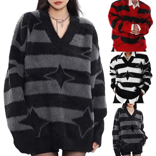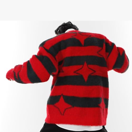 Hulpvktsgiq Men Sweaters Oversized Star Graphic Striped Cable Knitted Jumper Pullover Unisex Crewneck Retro Couple Tops