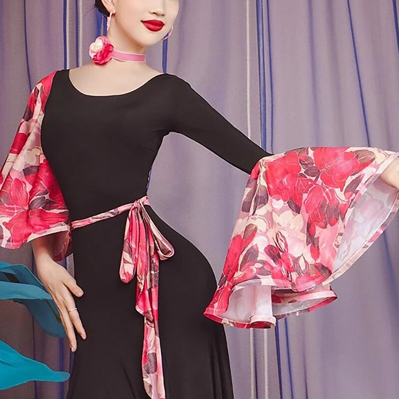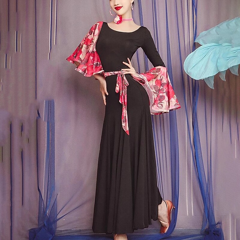 This Ballroom Dance Dress Printing Pleats Splicing Women's Performance Party Long Sleeve Polyester Mesh combines elegant design with practical functionality. Every detail has been carefully considered to ensure you get the finest possible experience. The superior construction means this product will serve you well for years to come.