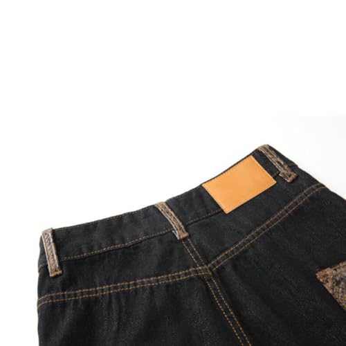 HZCX FASHION Mens Vintage Machete Cargo Pants Baggy Denim Wide Leg Jeans with Snakeskin Pockets Tapered Denim Trousers 6