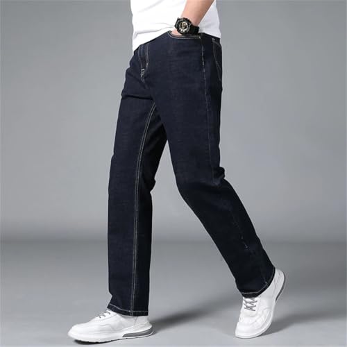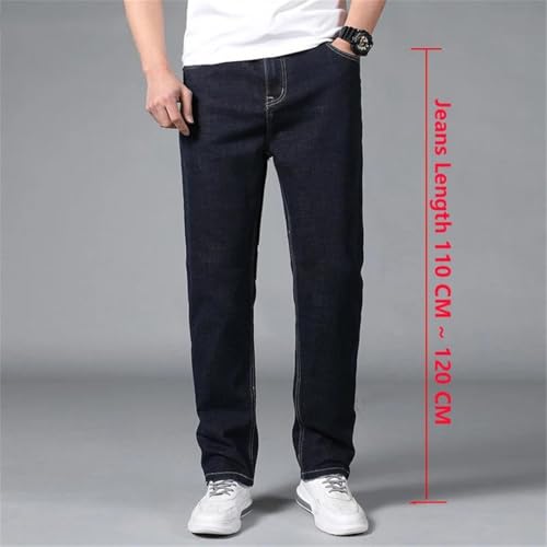 Men Dark Blue Extra Length Trousers Straight Cut Business Casual Tall Extended Length Jeans