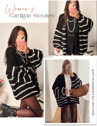Kissonic Women's Striped Cardigan Sweaters Open Front Long Sleeve Chunky Knit Oversized Fall Sweater Coat 1